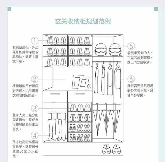 2、鞋柜的高度設計在15公分左右,因為一般女主人都有高跟鞋或靴子,一定要預留高度比較高可以放高跟鞋的區域。