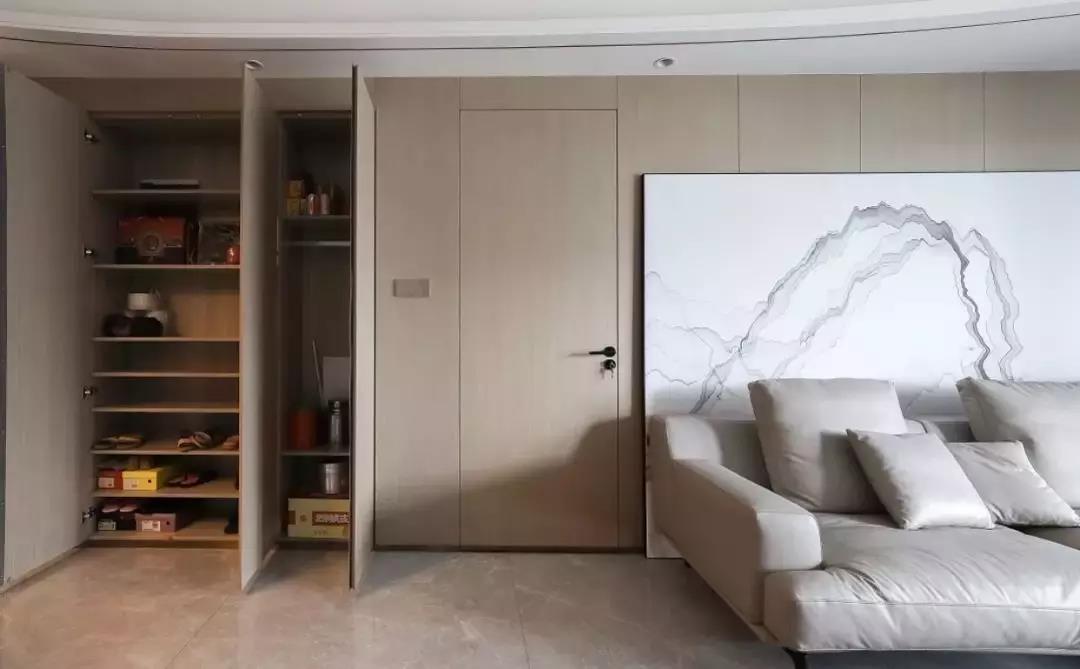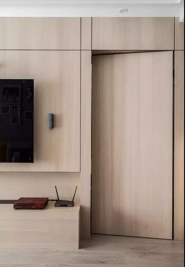 讓門(mén)隱形的最好方法就是讓門(mén)與墻融為一體,關(guān)鍵點(diǎn)在于不能有門(mén)套和門(mén)板的材質(zhì)和墻面完全一樣。這樣的“隱形門(mén)”,不僅最簡(jiǎn)單、造價(jià)上面也是最便宜的,能夠保證和墻面有一定的視覺(jué)統一感。