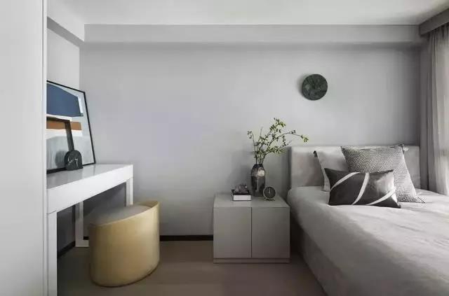 臥室延續開(kāi)放式書(shū)房的設計,安靜的灰調與暖色的木制地板造成視覺(jué)上溫潤的效果,營(yíng)造空間樸實(shí)悠閑的場(chǎng)域精神。一點(diǎn)點(diǎn)鵝黃色點(diǎn)綴,簡(jiǎn)單卻不單調的顏色搭配,過(guò)濾了原本飽和度的強烈和濃重,顯得更加柔和優(yōu)雅。