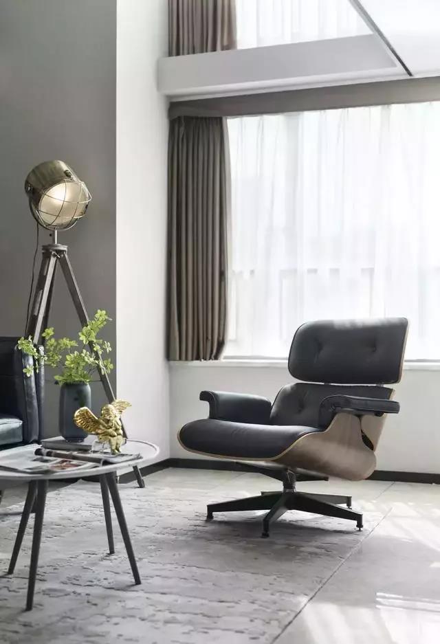 客廳挑高的背景墻使用書(shū)架壁紙裝飾,鈷藍色雙人沙發(fā)、黑色皮包躺椅、水紋精致大理石桌、仿古望遠鏡造型的落地燈,這些再日常不過(guò)的靜物、毫不鮮亮的色彩,在大面積自然光散射下,反而與外界的紛繁嘈雜隔絕開(kāi)來(lái),顯得高雅精致,于靜謐中彌散出震撼無(wú)比的恒久物感。