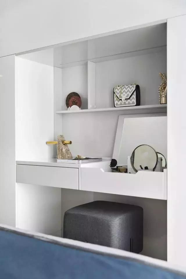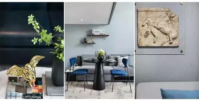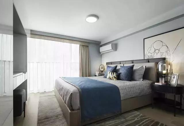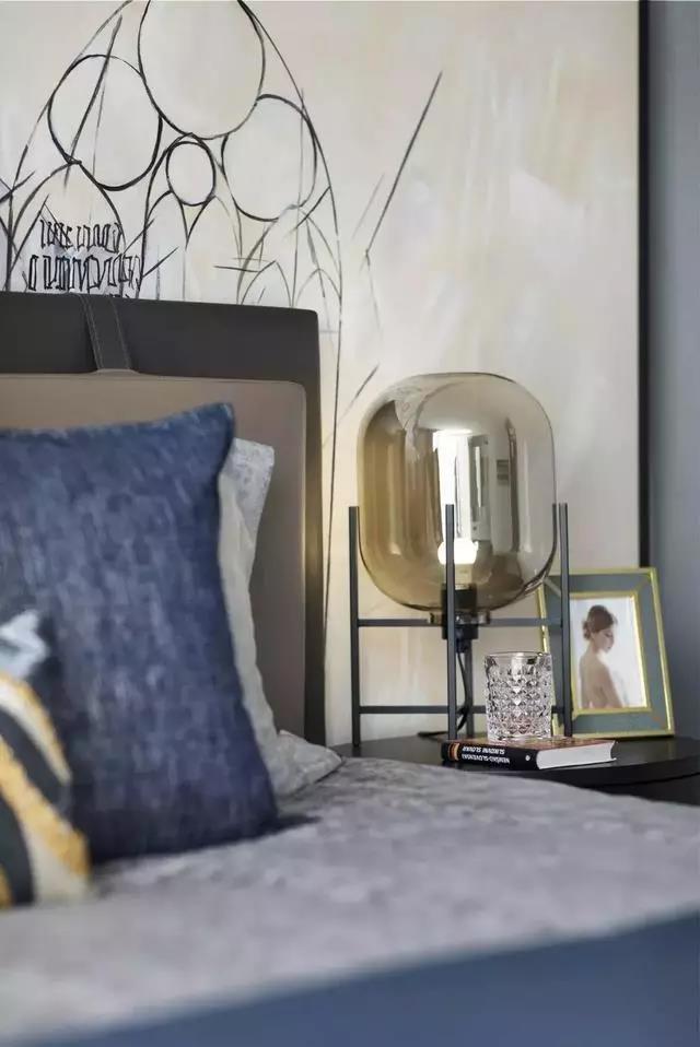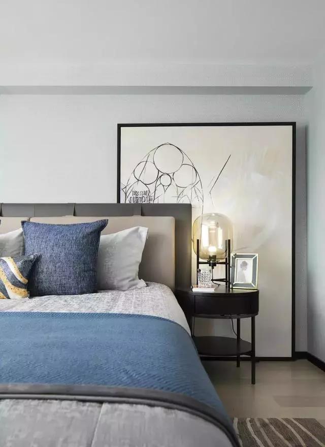 臥室依舊延續主色調的搭配,藍色系的幽靜高雅、灰色調的樸素恬淡,營(yíng)造遠離喧囂的生活氛圍。